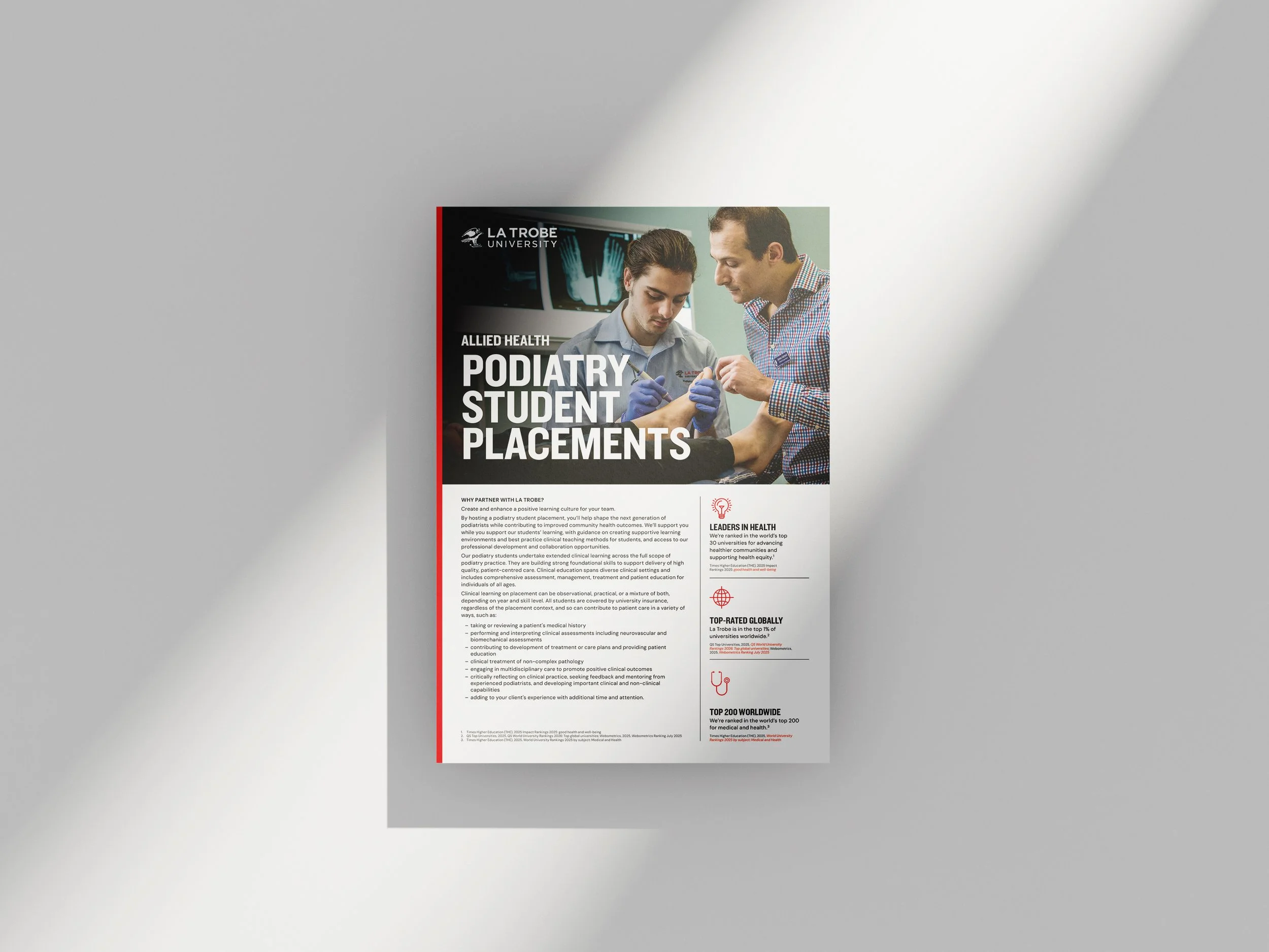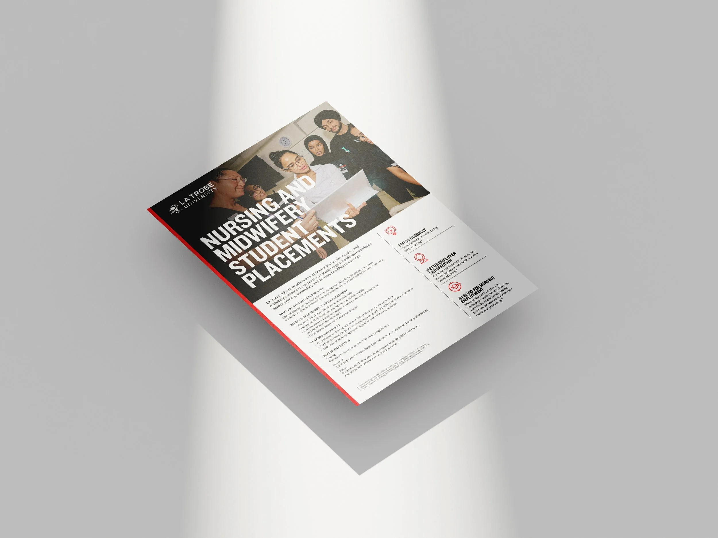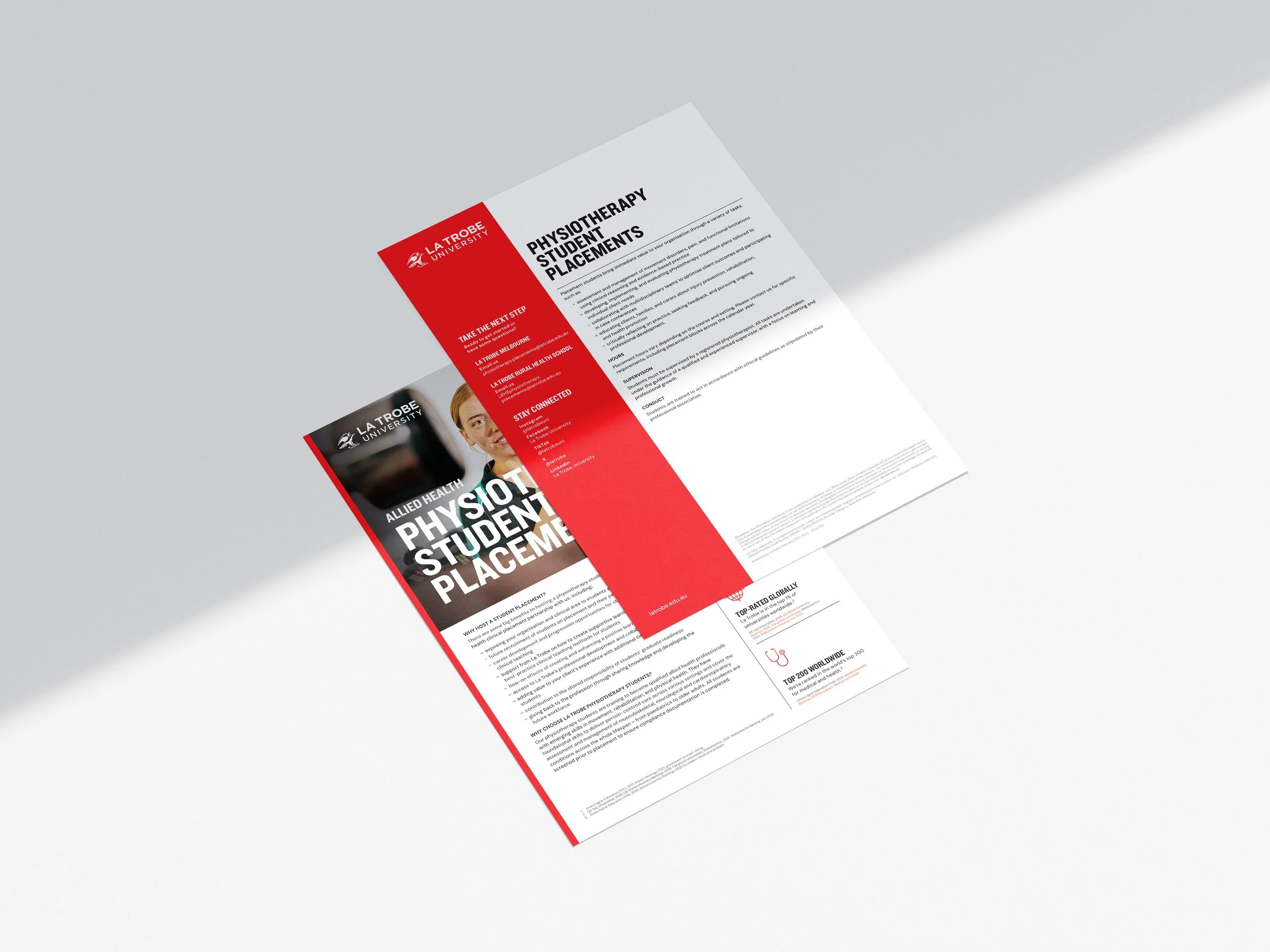 La Trobe University:Health Placement Flyers Brand applicationPublication Design Print and digitalTypography
